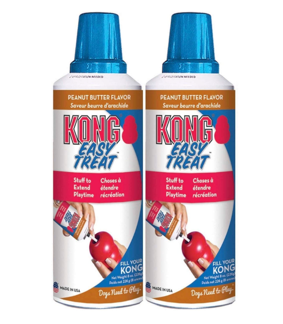 - I always keep a kong full of peanut butter in the freezer. Whenever I leave the house, I give it to my dog on my way out the door. freezing the kong prolongs the treat and helps to keep his attention while we are away, as well as aids with separation anxiety when we leave.